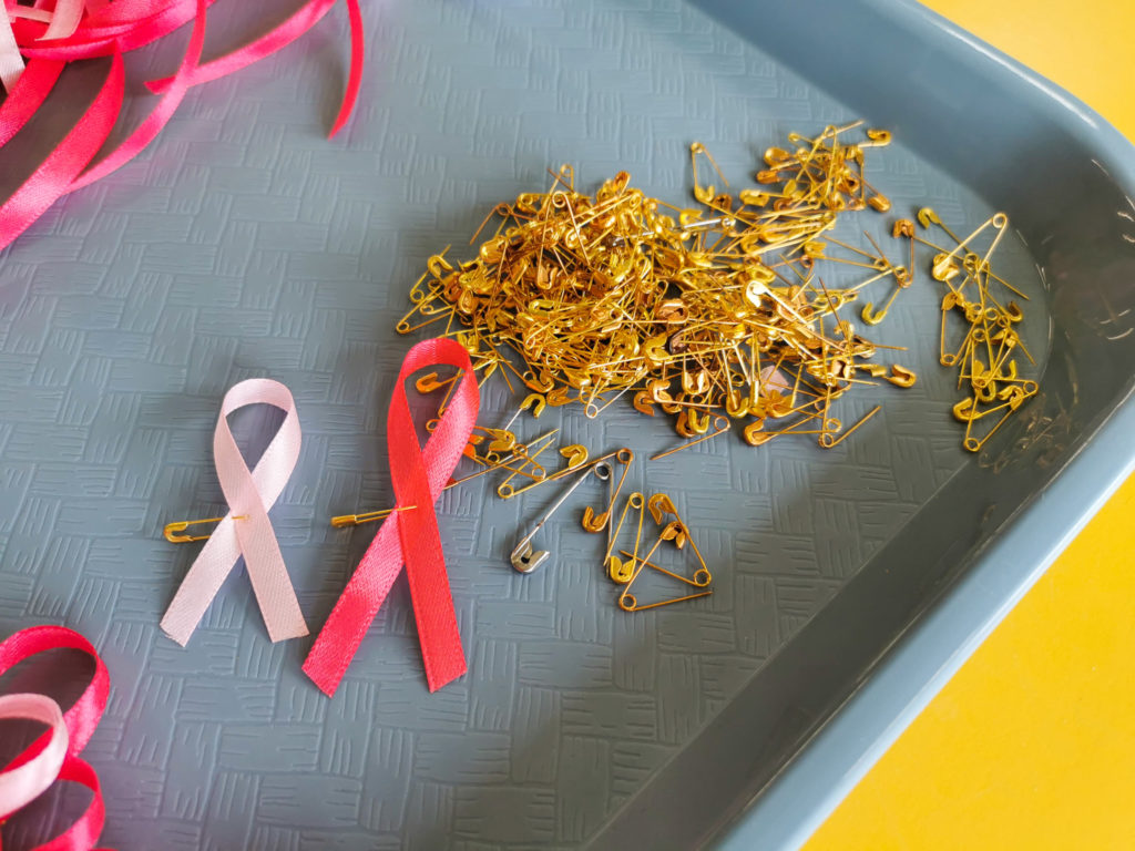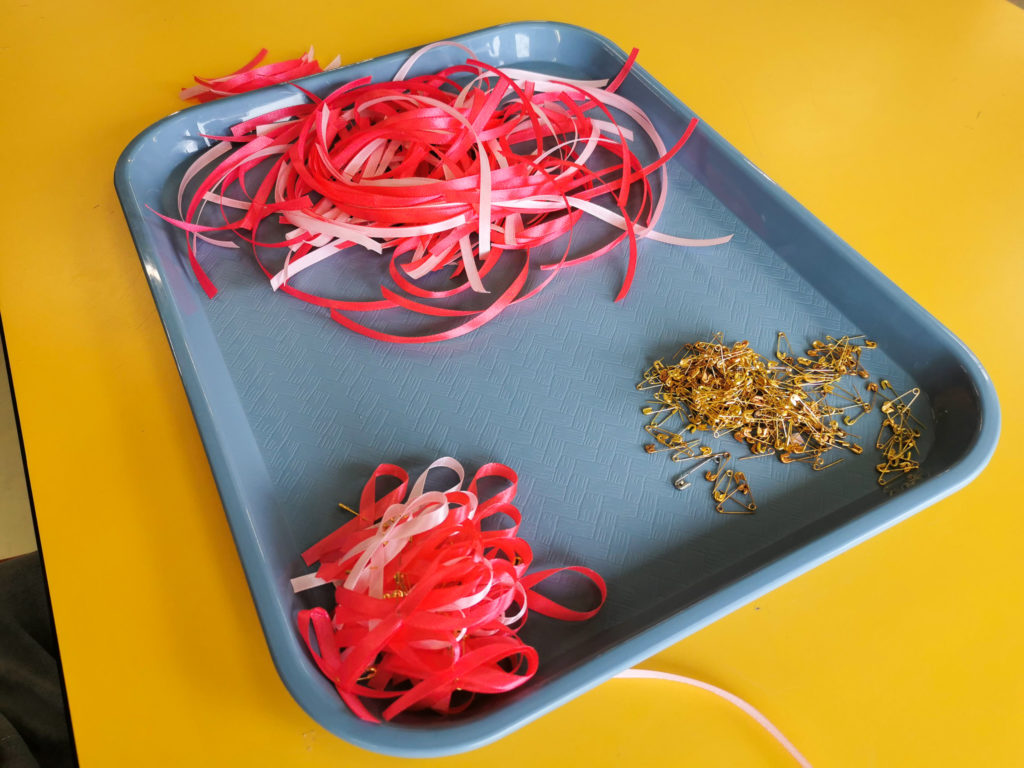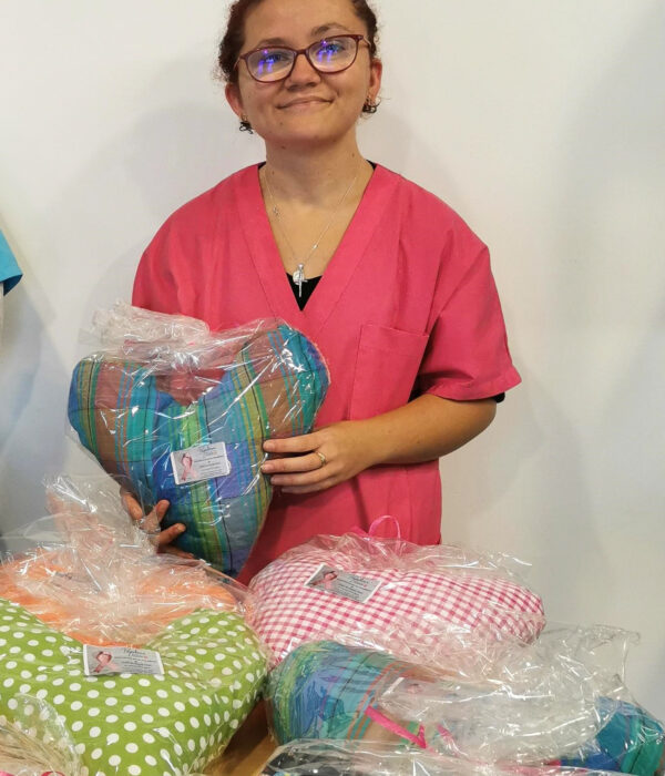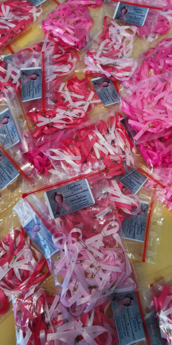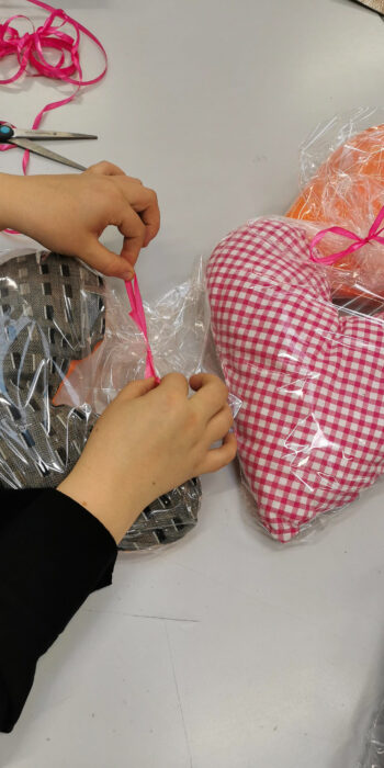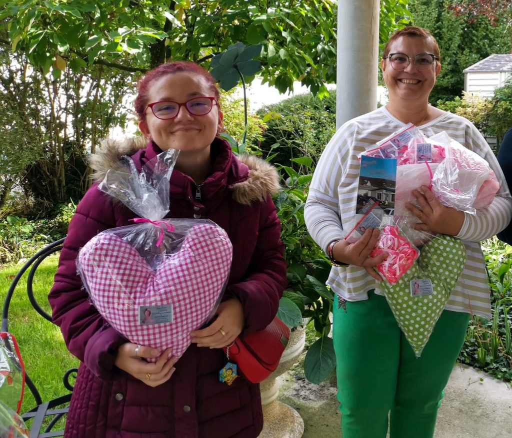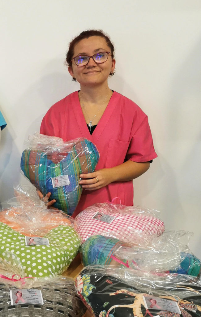Depuis plusieurs années l’opération Octobre Rose est l’occasion pour l’ESAT du Champ Fleuri de montrer son soutient aux malades touché·e·s par le cancer du sein. Pour cette édition, une banderole avec en lettres roses « l’ESAT du Champ Fleuri et l’association Les Papillons Blancs 76 se mobilisent contre le cancer du sein » a été affichée sur la façade de l’établissement. Dans les ateliers c’est la fabrication des rubans roses et des coussins en forme de cœur qui a rythmé le mois. Les rubans ont été distribués par le Bosroumois rose aux commerçants de la ville d’Elbeuf. Les coussins ont été remis aux chirurgiens des hôpitaux le 1er octobre. Ces coussins sont utilisés par les personnes en chimiothérapie.