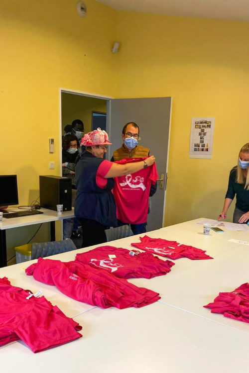 Une belle mobilisation des adultes de l’ESAT qui montrent une fois de plus leur solidarité. Ils ont été accompagnés par Anne-Marie Benharoun, fondatrice du Bosroumois Rose. Cet événement soutient les personnes touchées par le cancer du sein en récoltant des dons qui sont reversés aux organismes qui les prennent en charge. Mme Benharoun intervient également auprès des travailleur·euse·s pour les sensibiliser au dépistage de la maladie. C’est lors de son intervention du 26 octobre dernier que nous l’avons rencontré.