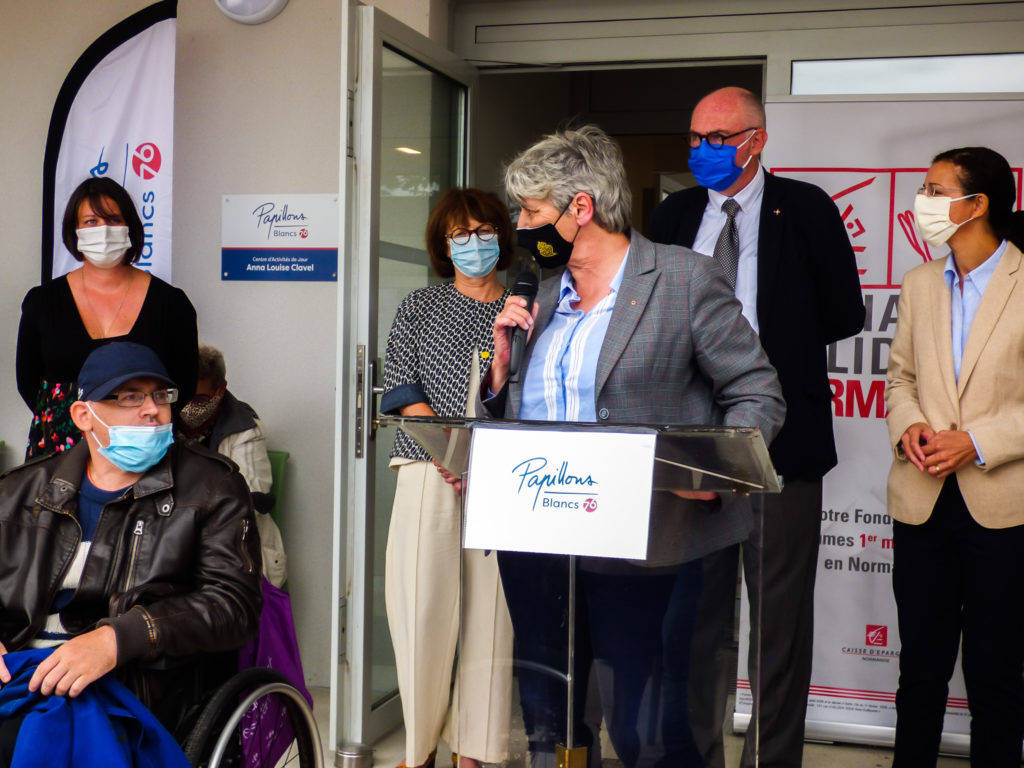 En présence de Blandine Lefebvre, vice-présidente en charge de l’action sociale du département de la Seine-Maritime (financeur du projet); de Didier Marie, sénateur de la Seine-Maritime; de Frédéric Marche, Maire de la ville de Cléon, de Nadia Mezrar, Maire de la commune voisine de Saint-Pierre-lès-Elbeuf et de Maryse Vépierre, membre du directoire de la Caisse d’Épargne Normandie, (financeurs de la salle Snoezelen).