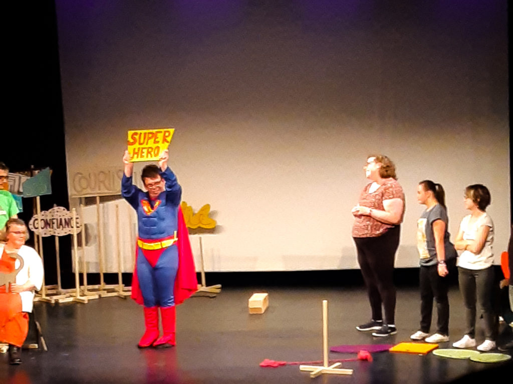 Constitué dans le cadre du projet » Culture Santé », financé par l’ARS et la DRAC de Normandie, ce groupe théâtre a pu monter ce spectacle unique avec l’aide Carine Piazzi, de la compagnie Konfiské, et Karine Roussel éducatrice au CAJ. Une création touchante, pleine d’humour et de musique, à l’image des apprentis comédiens. Le public présent ce jeudi 9 juin à Fécamp, composé d’invités, amis, familles, mais également de groupes d’autres établissements de l’association Papillons Blancs 76, a été immédiatement conquis par la représentation. Tantôt riant aux situations loufoques avec Alexandrine, Déborah, Maxime, Brayan, Margaux et Nathan , tantôt chantant en chœur les chansons avec Sonia , la « star du groupe ». Tous ont été ravis de leur prestation et des retours du public.